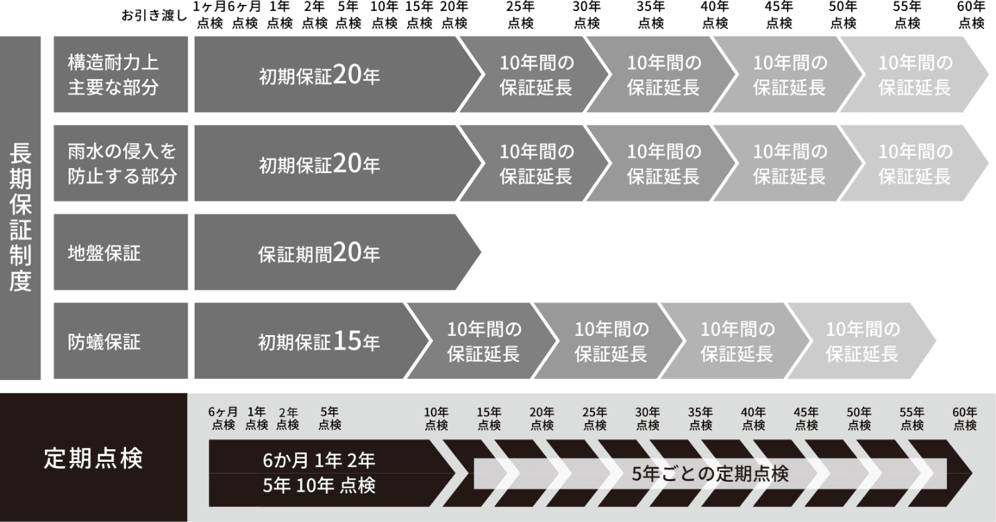- 対象建物お引き渡し日より10年間又は、20年間。