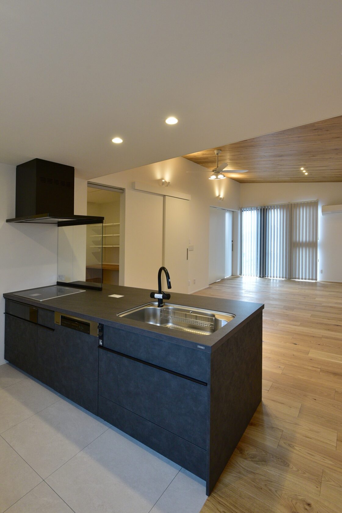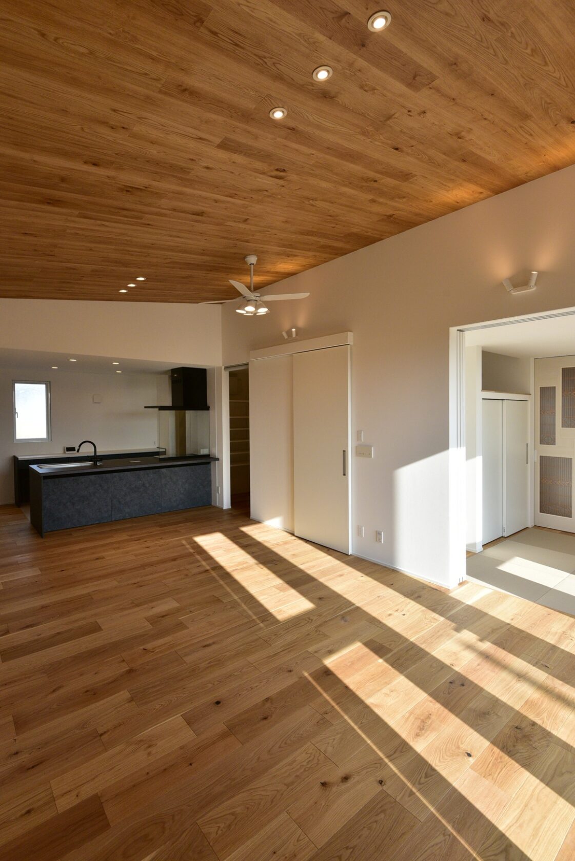 室内は勾配天井のLDK。