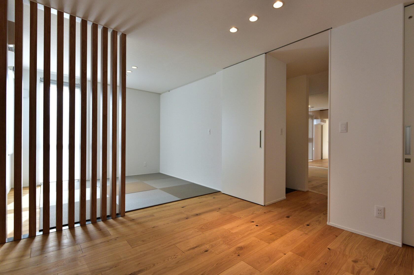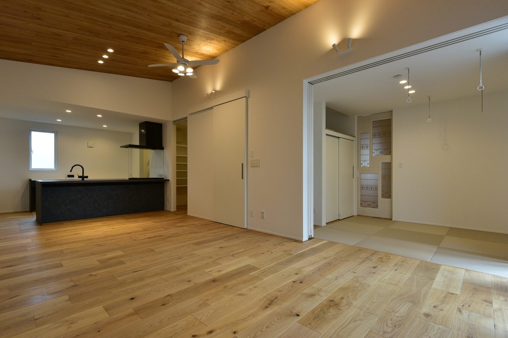 リビングに隣接した畳スペースは、くつろぎの場としても、来客時の客間としても使える設計。