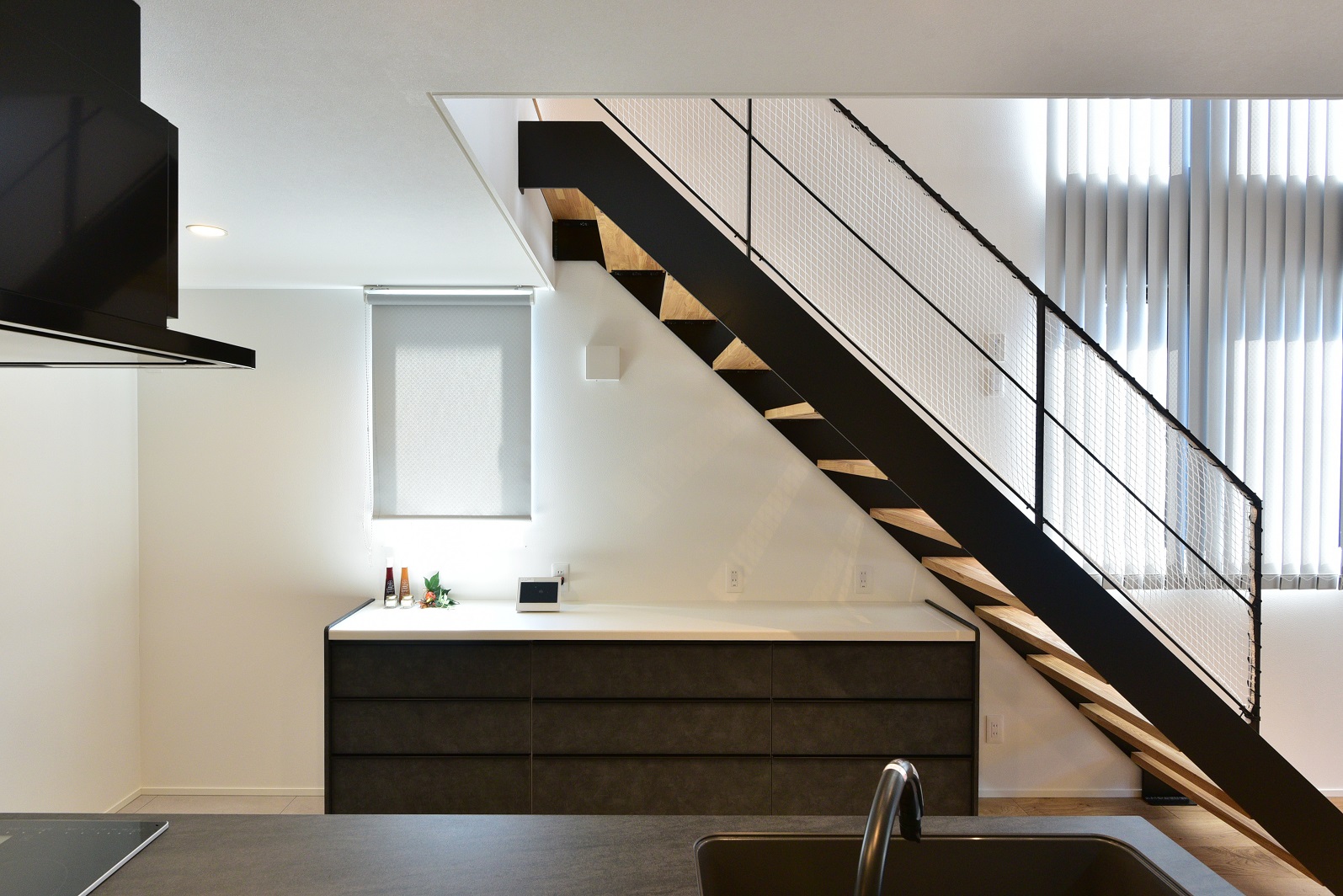 また、隣地からの視線を遮る窓の高さや配置に配慮しつつ、吹き抜けと窓から光をたっぷり取り込むことで、プライバシーと明るさを両立した心地よいリビングを実現しました。